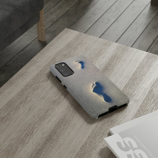 Beach Escape Tough Phone Case - Tropical Sand Footprints Design for iPhone/Samsung/Google Pixel