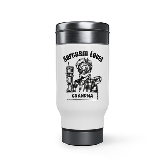Gen X Sarcasm Level - Grandma Stainless Steel Travel Mug with Handle, 14oz